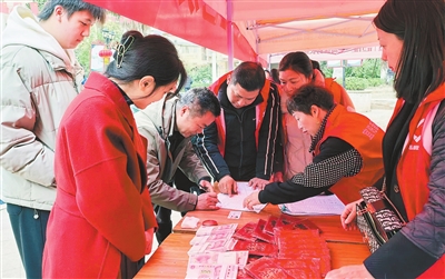 本报讯 江西日报全媒体记者邹海斌摄影报道:1月19日至20日,宜春市宜阳新区官园街道明月安居片区地中海风情小区的1000余户业主,惊喜地收到了小区业主委员会派发的新年红包。这是该小区首次向全体业主派发新年红包。