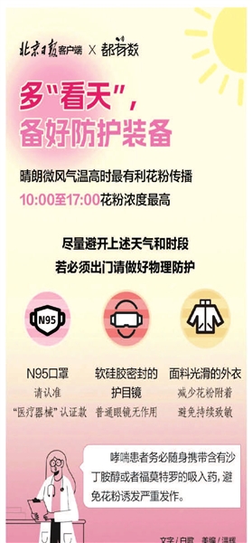 专家提醒,易过敏人群可参考相关公共服务信息做好防护,如在花粉浓度较高时外出佩戴口罩和护目镜;南方的居民在春季尤其要注意保持卫生,控制室内湿度在50%以下,定期清洁家居用品,防止室内霉菌滋生。