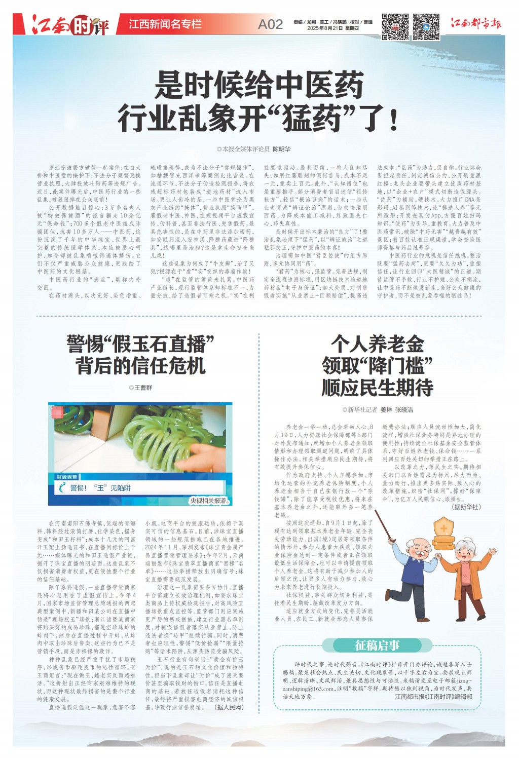 - 征稿启事 评时代之事,论时代强音。《江南时评》栏目开门办评论,诚邀各界人士赐稿。聚焦社会热点、民生关切、文化现象等,以千字左右为宜。要求观点鲜明、逻辑清晰、文风鲜活,兼具思想性与可读性。来稿请发至电子邮箱j