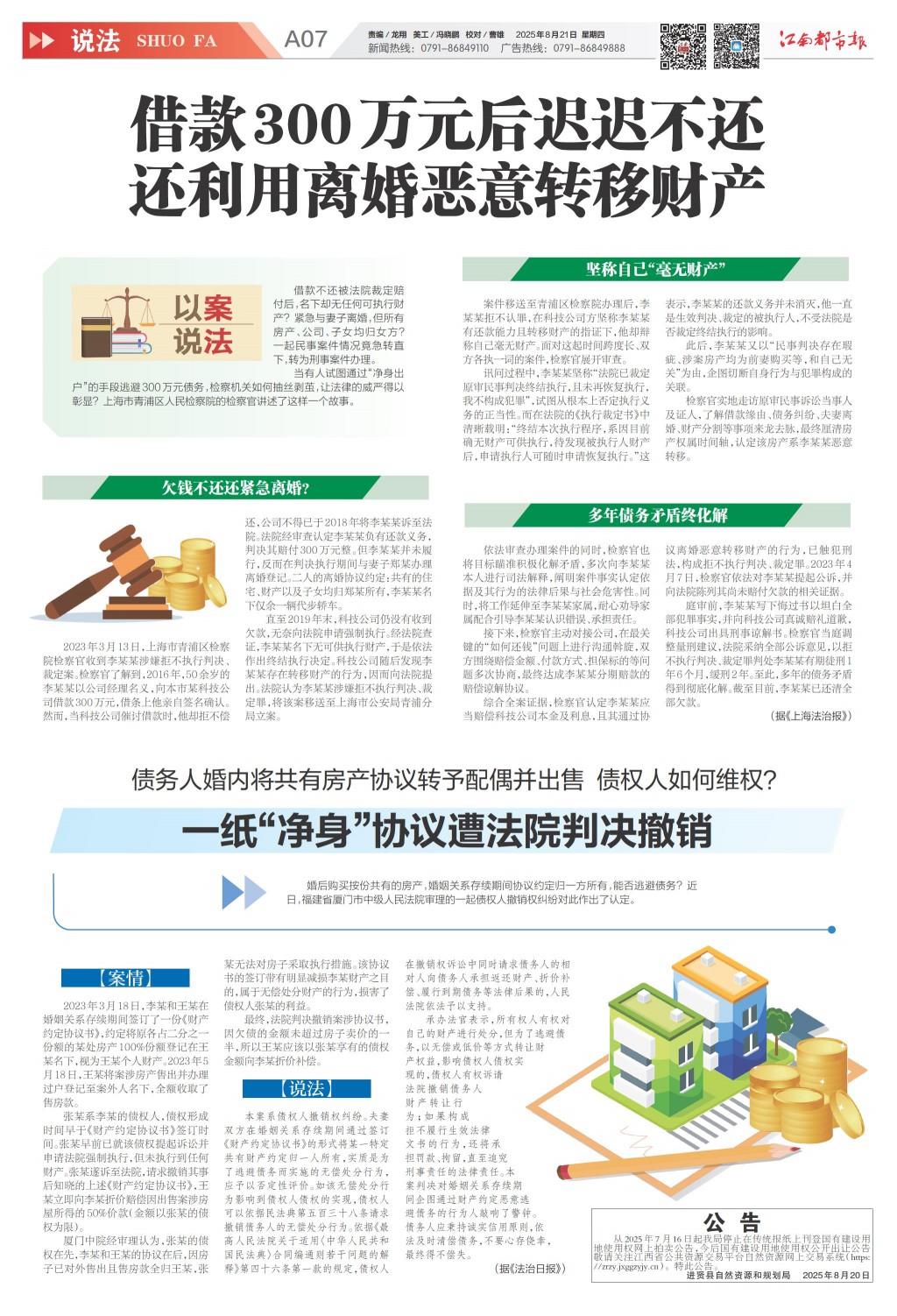 - 借款300万元后迟迟不还 还利用离婚恶意转移财产 借款不还被法院裁定赔付后,名下却无任何可执行财产?紧急与妻子离婚,但所有房产、公司、子女均归女方?一起民事案件情况竟急转直下,转为刑事案件办理。 当有人试图通过“净身出户”的手段逃避300万元
