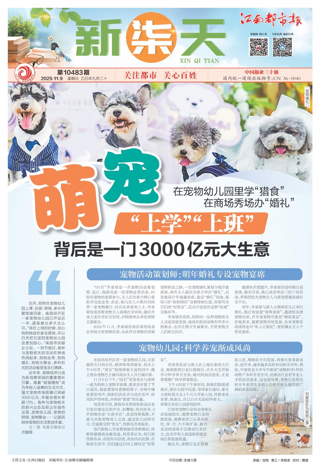 白天,狗狗在宠物幼儿园上课、玩耍;傍晚,家长将爱宠接回家。南昌经开区一家宠物幼儿园已开设近一年,逐渐被众多犬主认可。“我在上班的时候,担心狗狗独自在家会孤独,所以白天把它送到宠物幼儿园会更加放心。